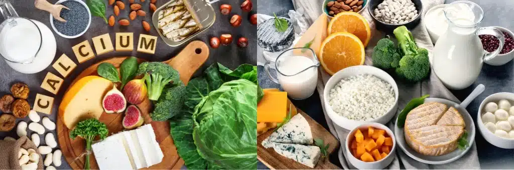 นม และผลิตภัณฑ์จากนมเป็นแหล่งแคลเซียม (Calcium) ชั้นเยี่ยมสำหรับการเจริญเติบโต โดยนมวัว 1 แก้ว (240 มล.) มีแคลเซียมสูงถึง 300 มิลลิกรัม หรือ 30% ของปริมาณที่ร่างกายต้องการต่อวัน นอกจากแคลเซียมที่เพิ่มความสูงได้แล้ว นมยังอุดมด้วยโปรตีนคุณภาพสูง วิตามินดีที่ช่วยดูดซึมแคลเซียม และแร่ธาตุสำคัญอื่น ๆ เช่น ฟอสฟอรัส (Phosphorus) แมกนีเซียม (Magnesium) ที่จำเป็นต่อการพัฒนากระดูก